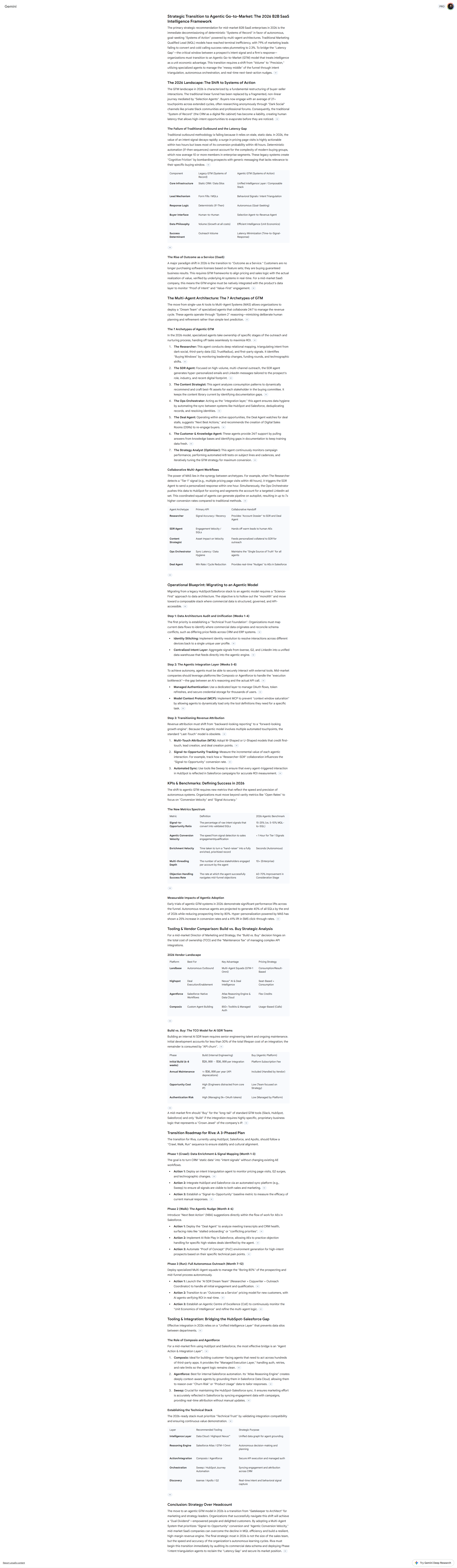 - *Phase 3 (Run):* Full Autonomous Outreach. Deploying agents to manage the “Boring 80%” of prospecting and mid-funnel follow-up.